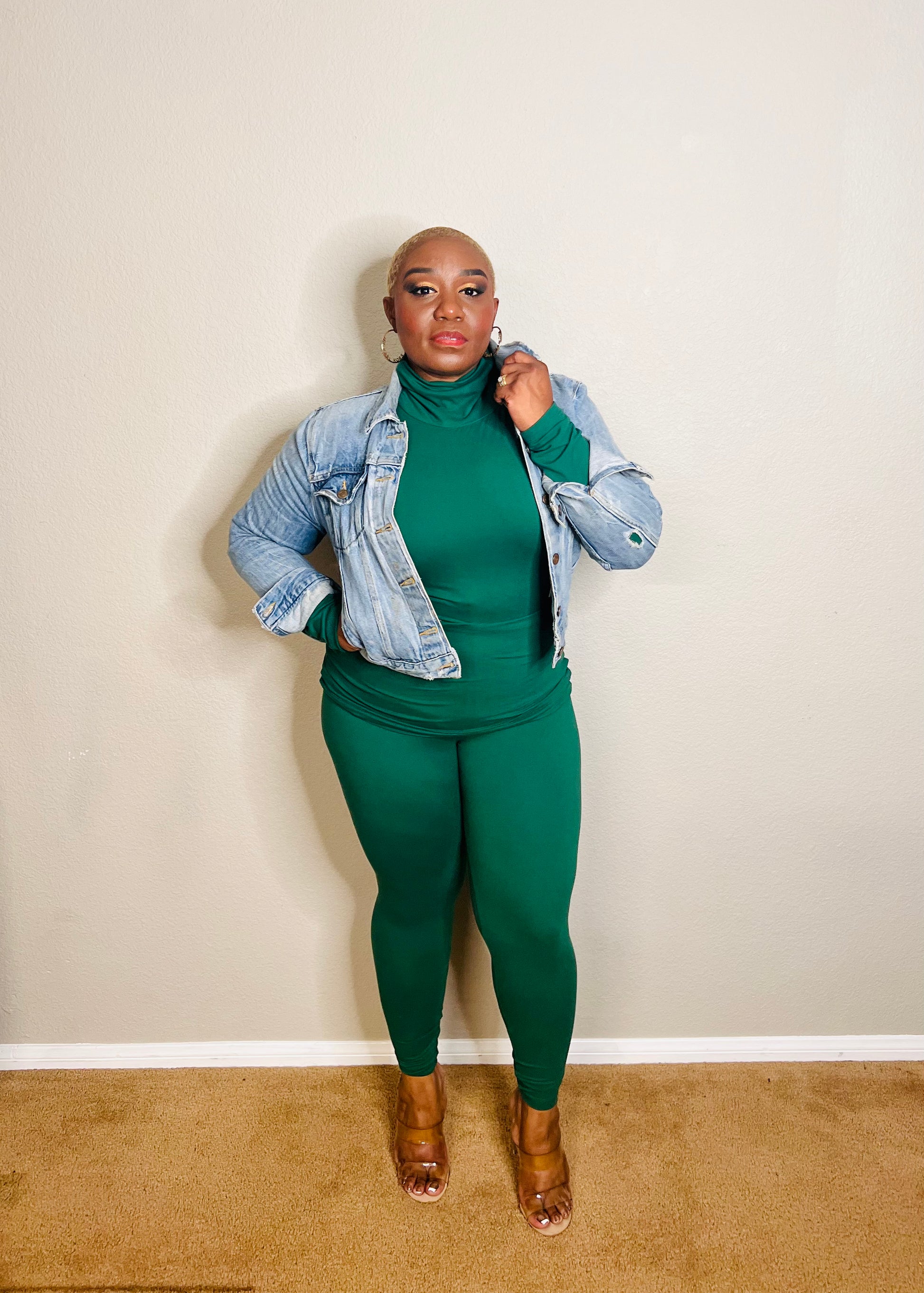 Stay cozy and stylish in our Green Mock Neck Lounge Set. Made with a brushed microfiber material, this set is buttery soft and offers perfect stretch and recovery. Available in regular and curvy sizes, with a mock neck top and leggings.