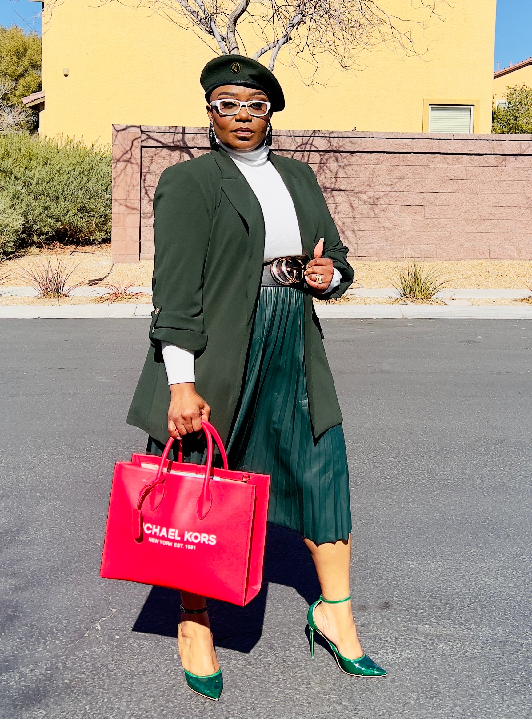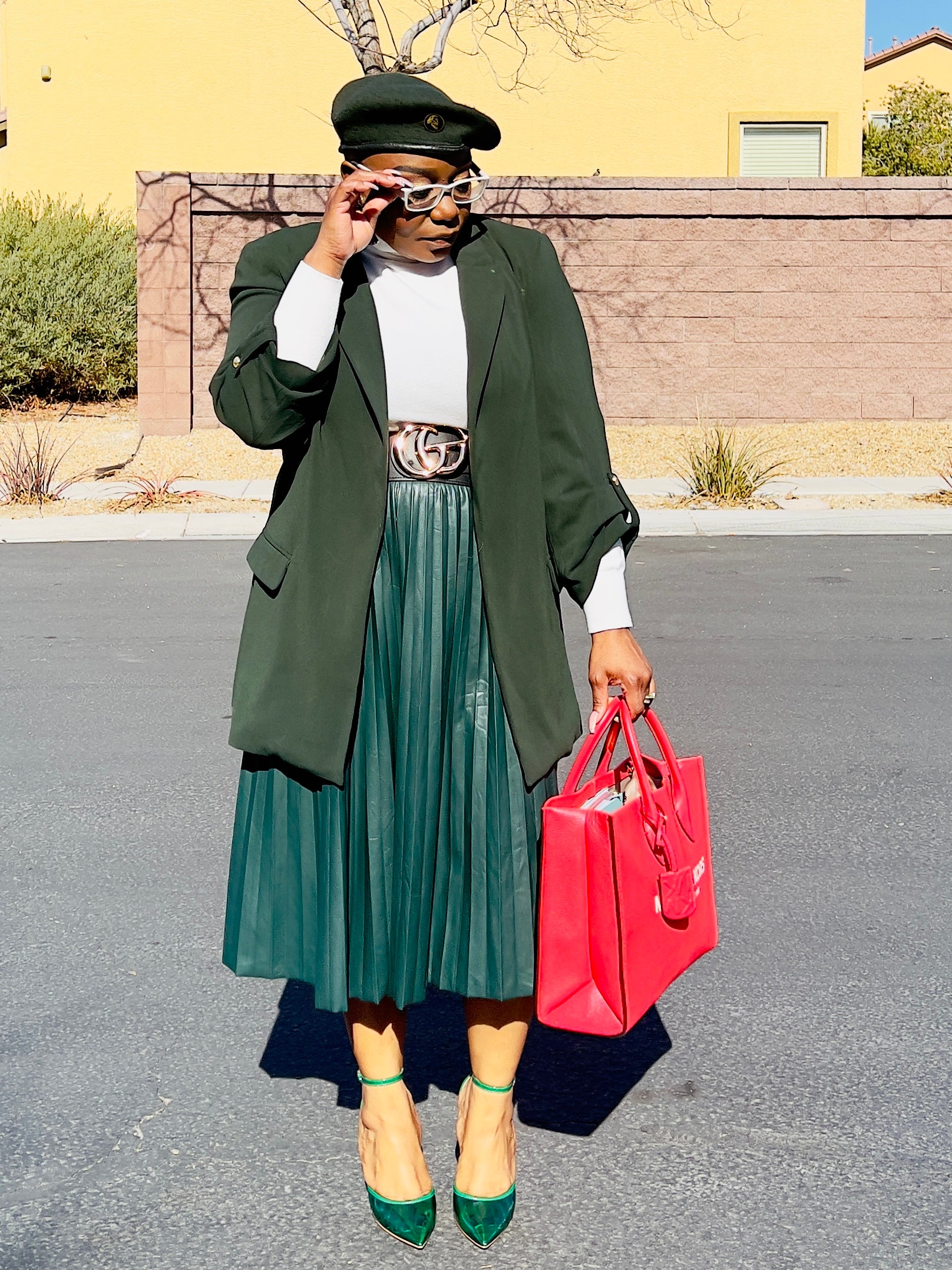This forest green faux leather pleated skirt is a versatile addition to any wardrobe. Made from high-quality faux leather, it offers the luxurious feel of real leather without the high price tag. The pleated design adds a touch of elegance and the forest green color adds a pop of color to any outfit. Perfect for any occasion, this skirt is a must-have for any fashion-forward individual.