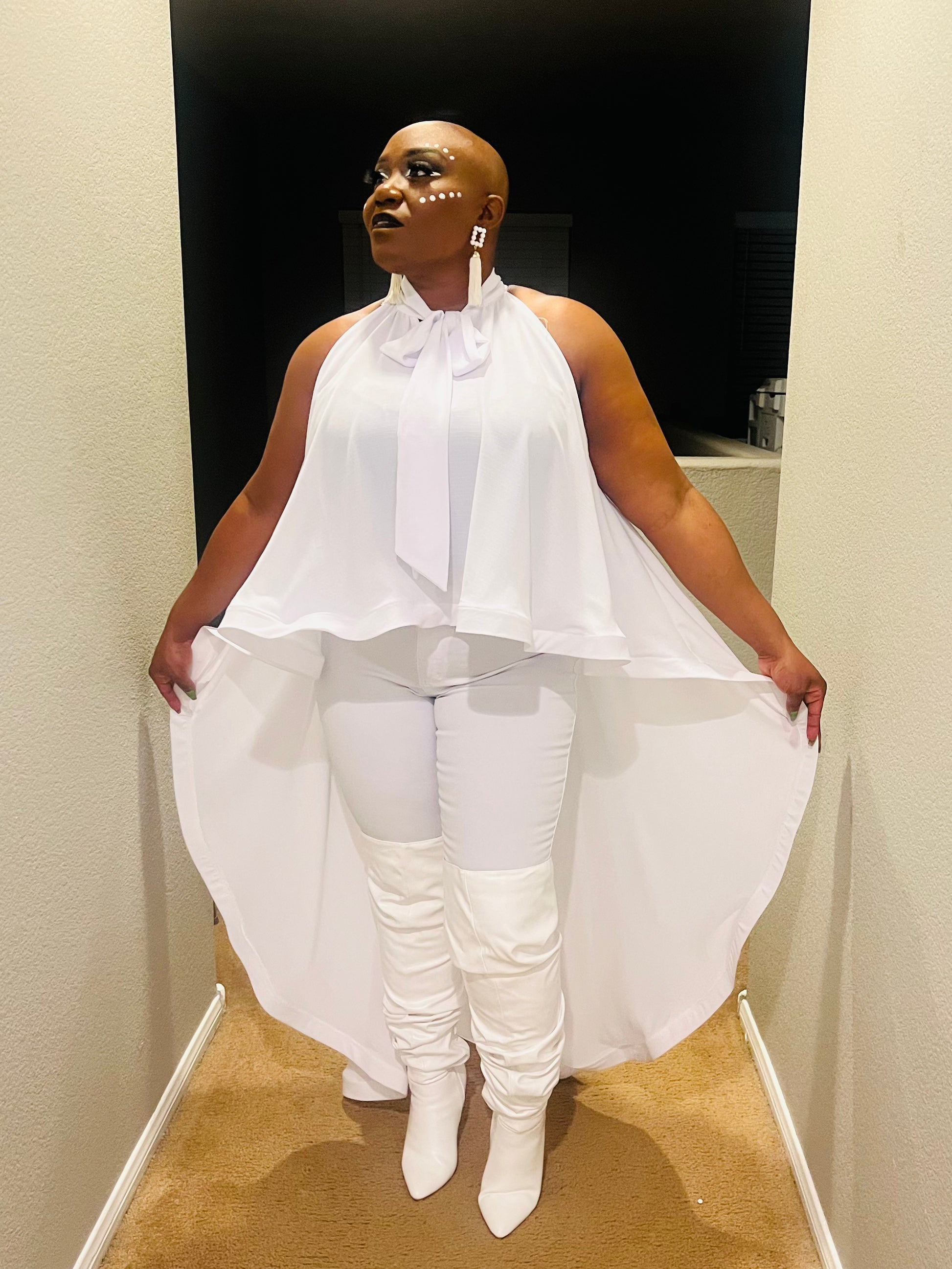 The Wakanda Top is a versatile piece that allows you to wear it in two different ways - arms in for a shoulder-less look or arms out for a stylish ensemble. Made with high quality materials, it comes in plus sizes for all body types. Express your unique style with the Wakanda Top.